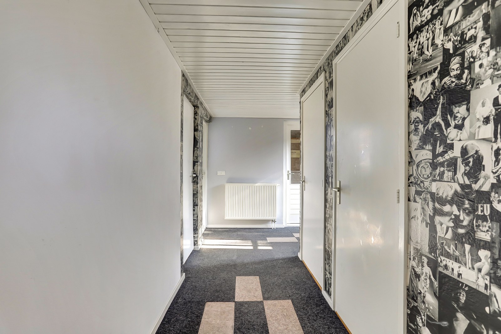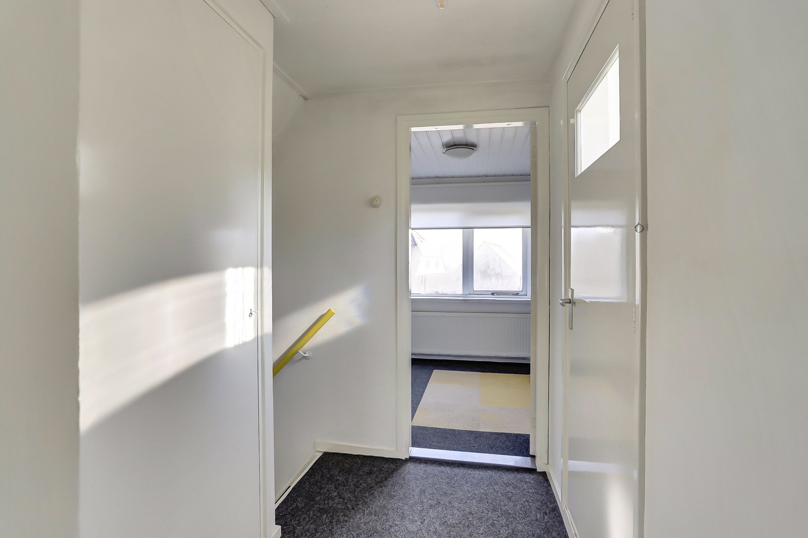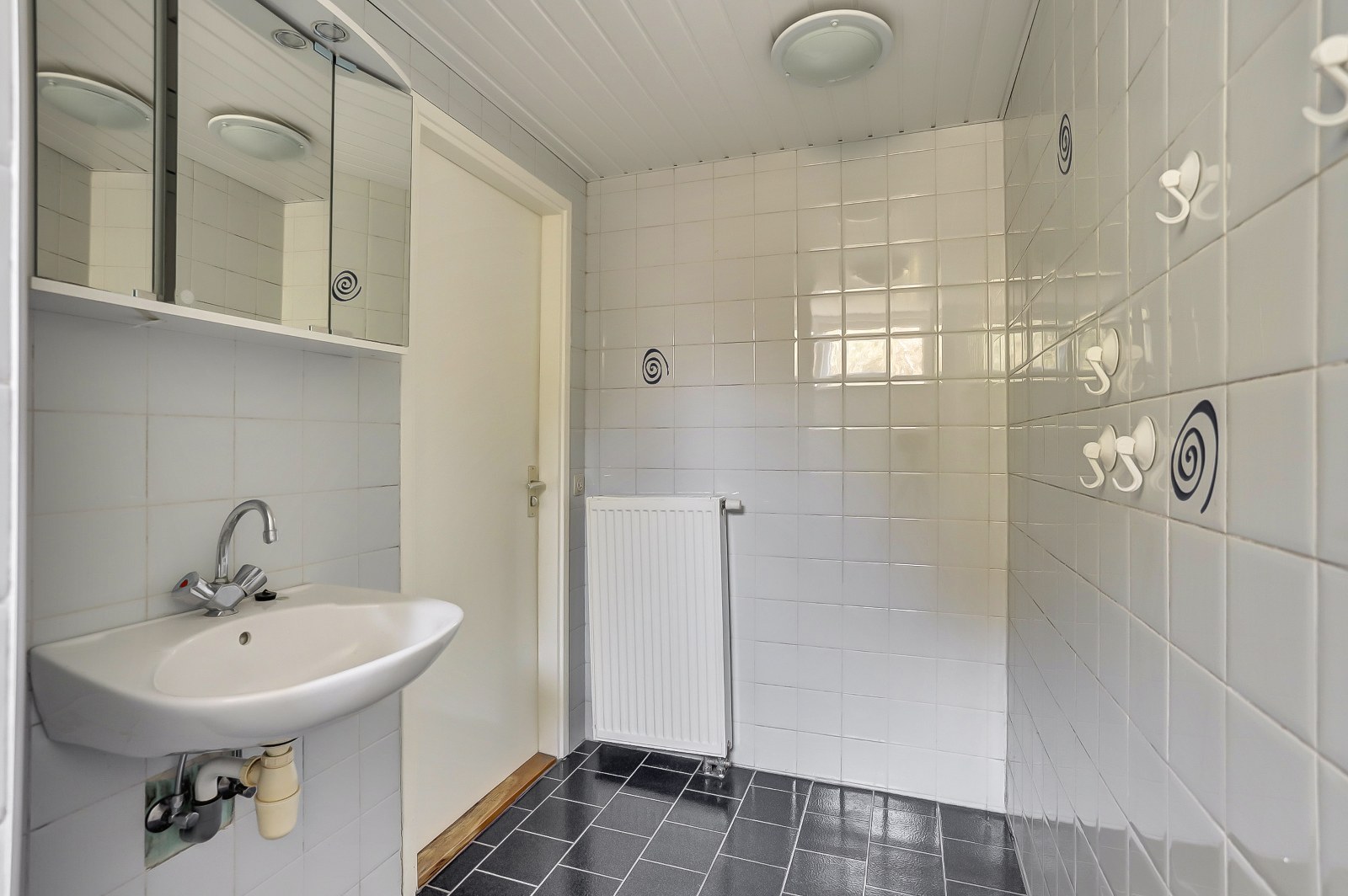 Je komt binnen via de entree met meterkast en een praktische kelder. Vanuit hier betreed je de L-vormige woonkamer, waar je een mooi zicht hebt over de achtertuin en de landerijen daarachter. Aansluitend bevindt zich de eenvoudige, maar functionele keuken. Vanuit de gang heb je toegang tot het gastentoilet en de badkamer. De badkamer is netjes uitgevoerd en voorzien van een inloopdouche en wastafel. Tevens is er een inpandige berging aanwezig, wat zorgt voor extra bergruimte of hobbymogelijkheden. De indeling op de begane grond biedt daarnaast kansen om een slaapkamer te realiseren, waardoor levensloopbestendig wonen tot de mogelijkheden behoort.