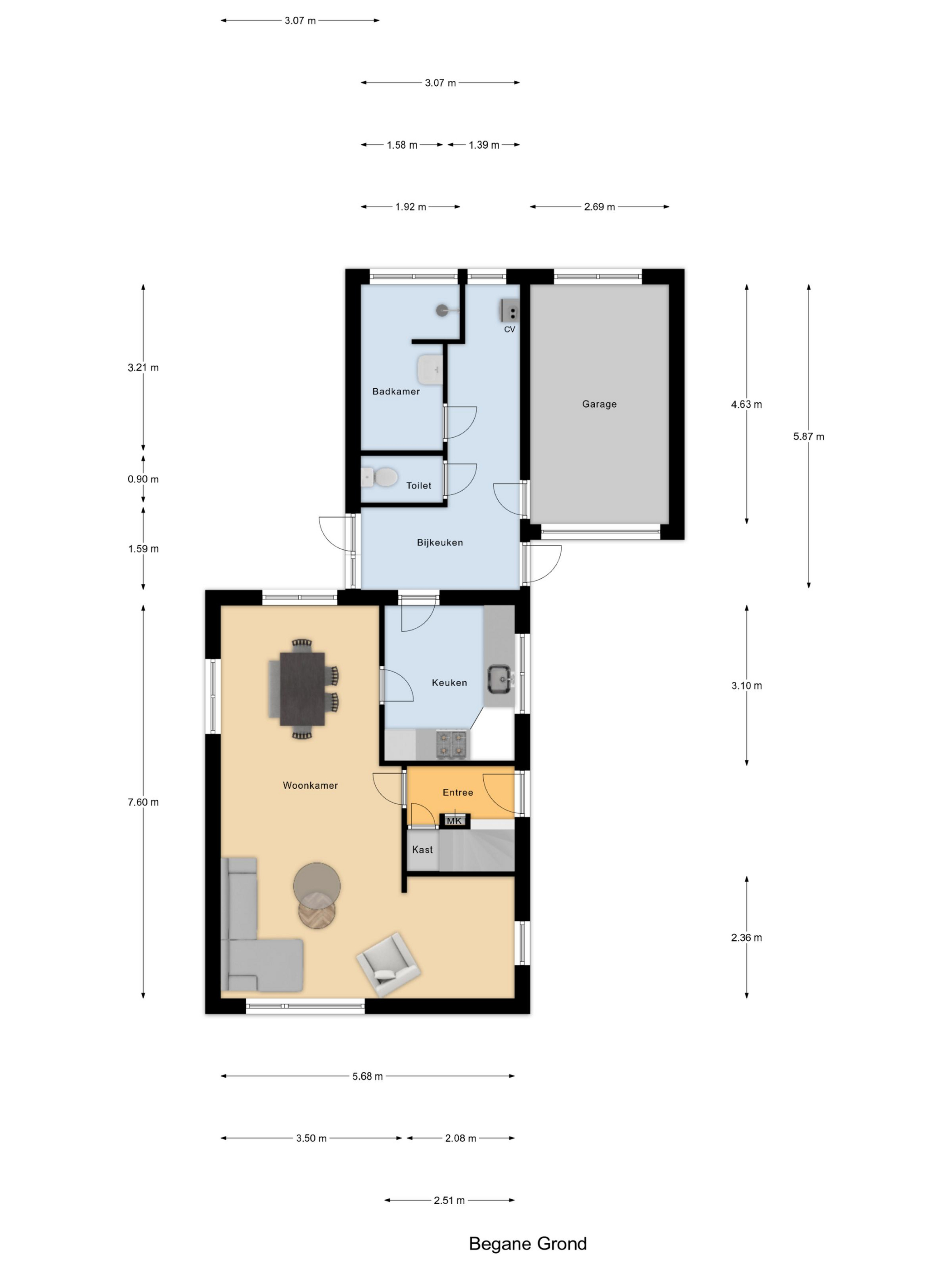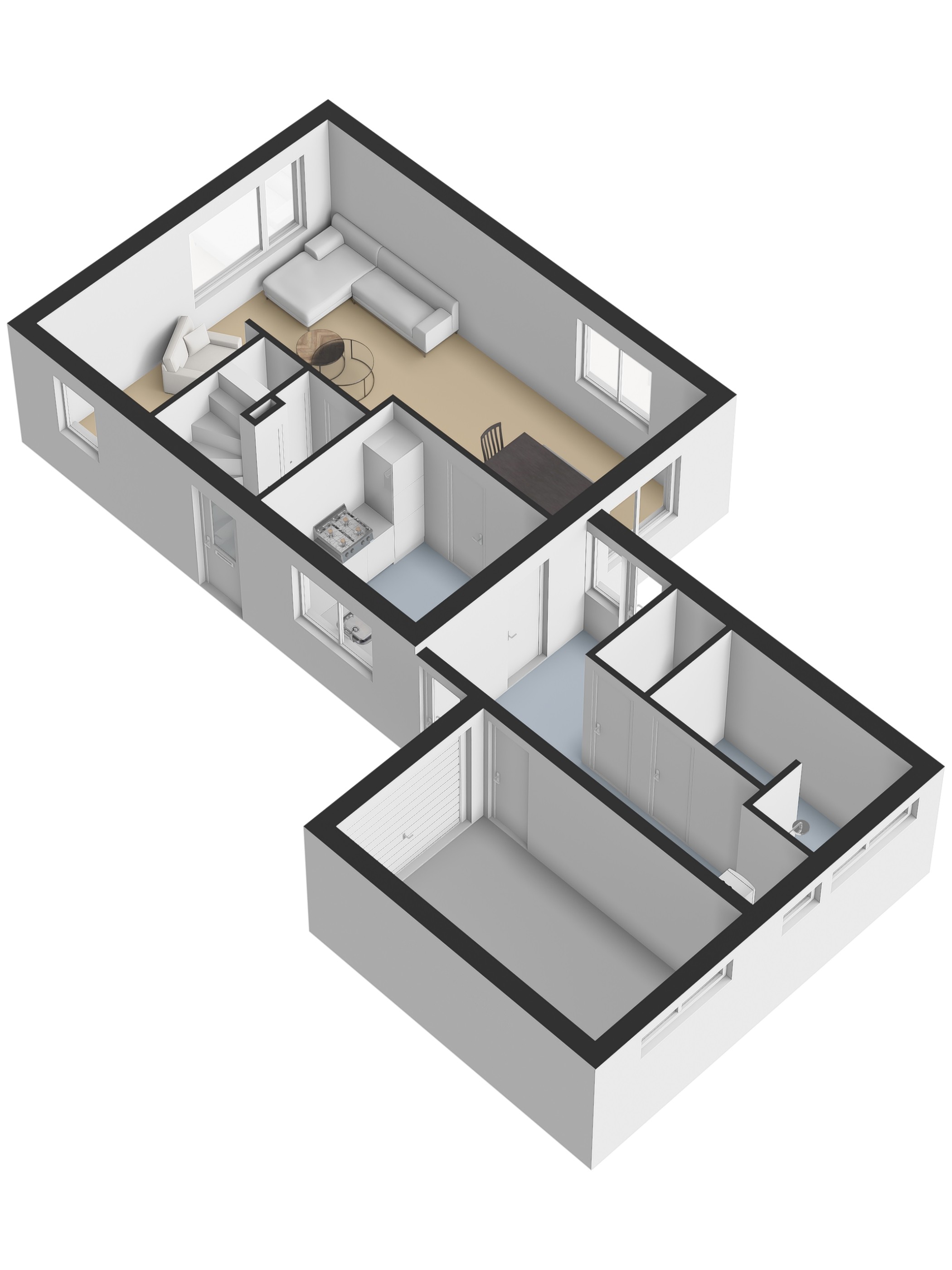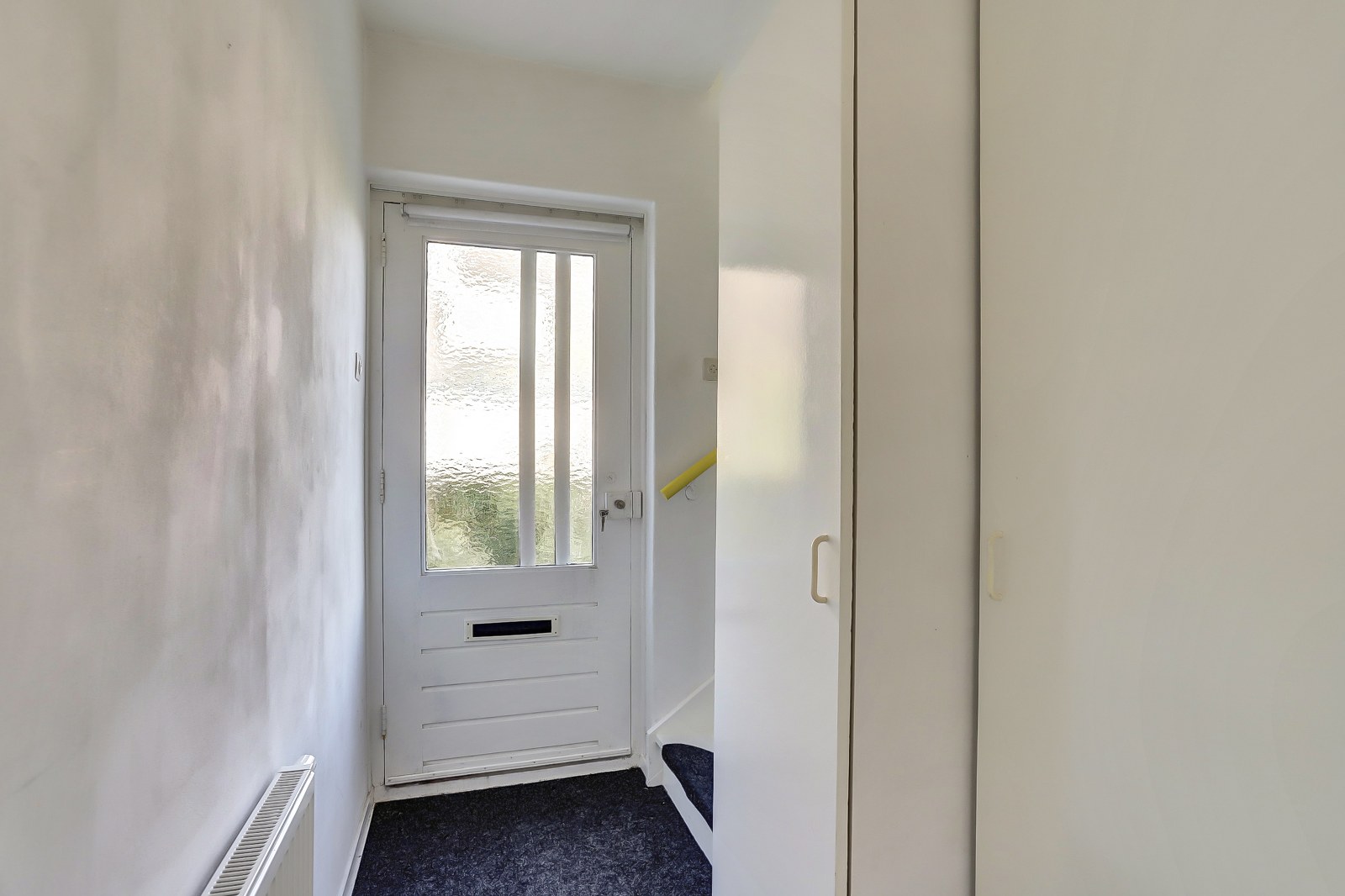 Je komt binnen via de entree met meterkast en een praktische kelder. Vanuit hier betreed je de L-vormige woonkamer, waar je een mooi zicht hebt over de achtertuin en de landerijen daarachter. Aansluitend bevindt zich de eenvoudige, maar functionele keuken. Vanuit de gang heb je toegang tot het gastentoilet en de badkamer. De badkamer is netjes uitgevoerd en voorzien van een inloopdouche en wastafel. Tevens is er een inpandige berging aanwezig, wat zorgt voor extra bergruimte of hobbymogelijkheden. De indeling op de begane grond biedt daarnaast kansen om een slaapkamer te realiseren, waardoor levensloopbestendig wonen tot de mogelijkheden behoort.