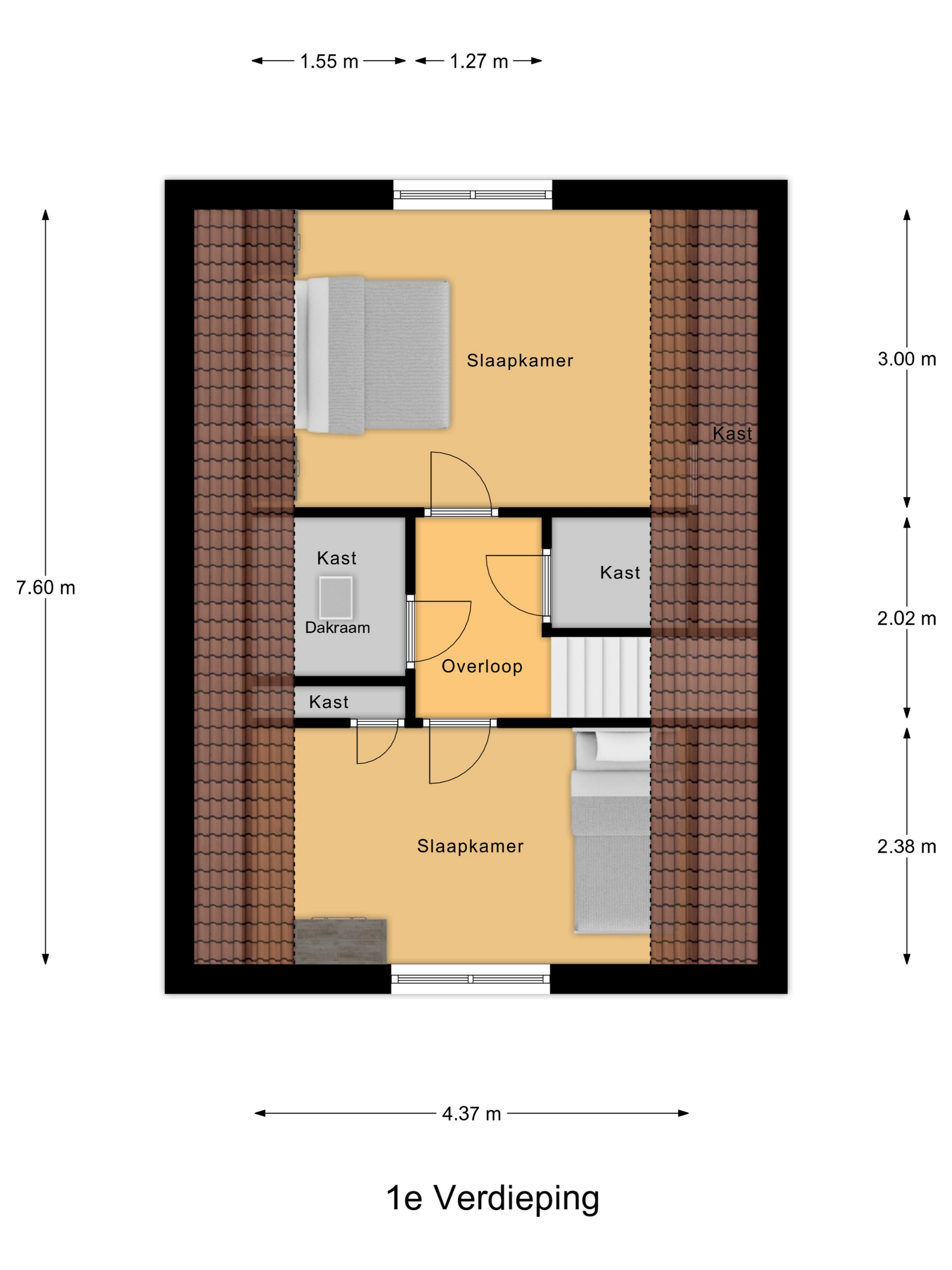 Op de eerste verdieping kom je via de overloop bij twee slaapkamers. De voormalige badkamer op deze verdieping is verwijderd, maar de aansluitingen bieden de mogelijkheid om hier opnieuw een badkamer te realiseren. Met het plaatsen van een dakkapel kan hier bovendien een volwaardige en comfortabele badkamer worden gecreëerd.