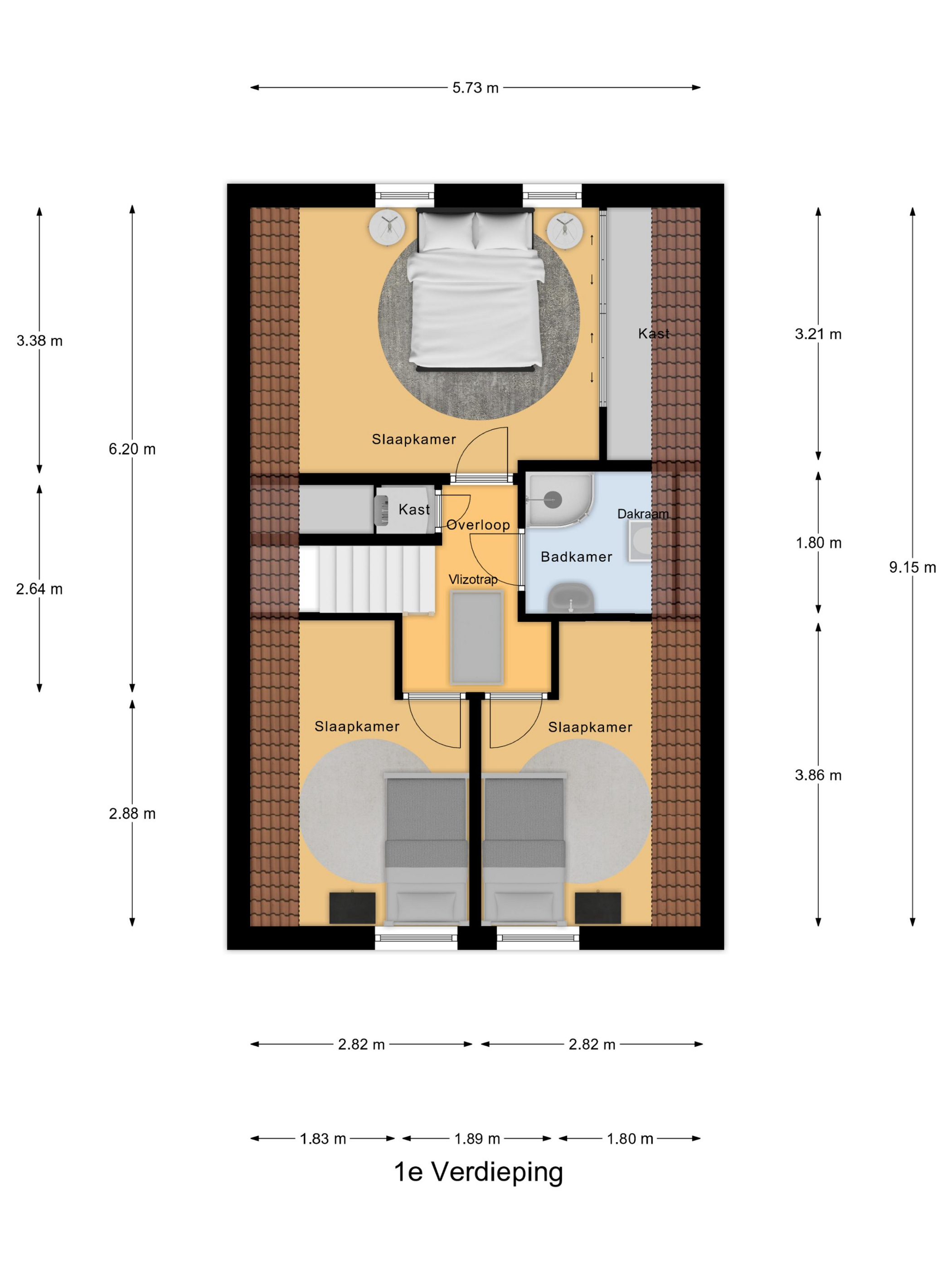 | Aantal badkamers | 1 voorzien van douche, toilet en wastafelmeubel. |