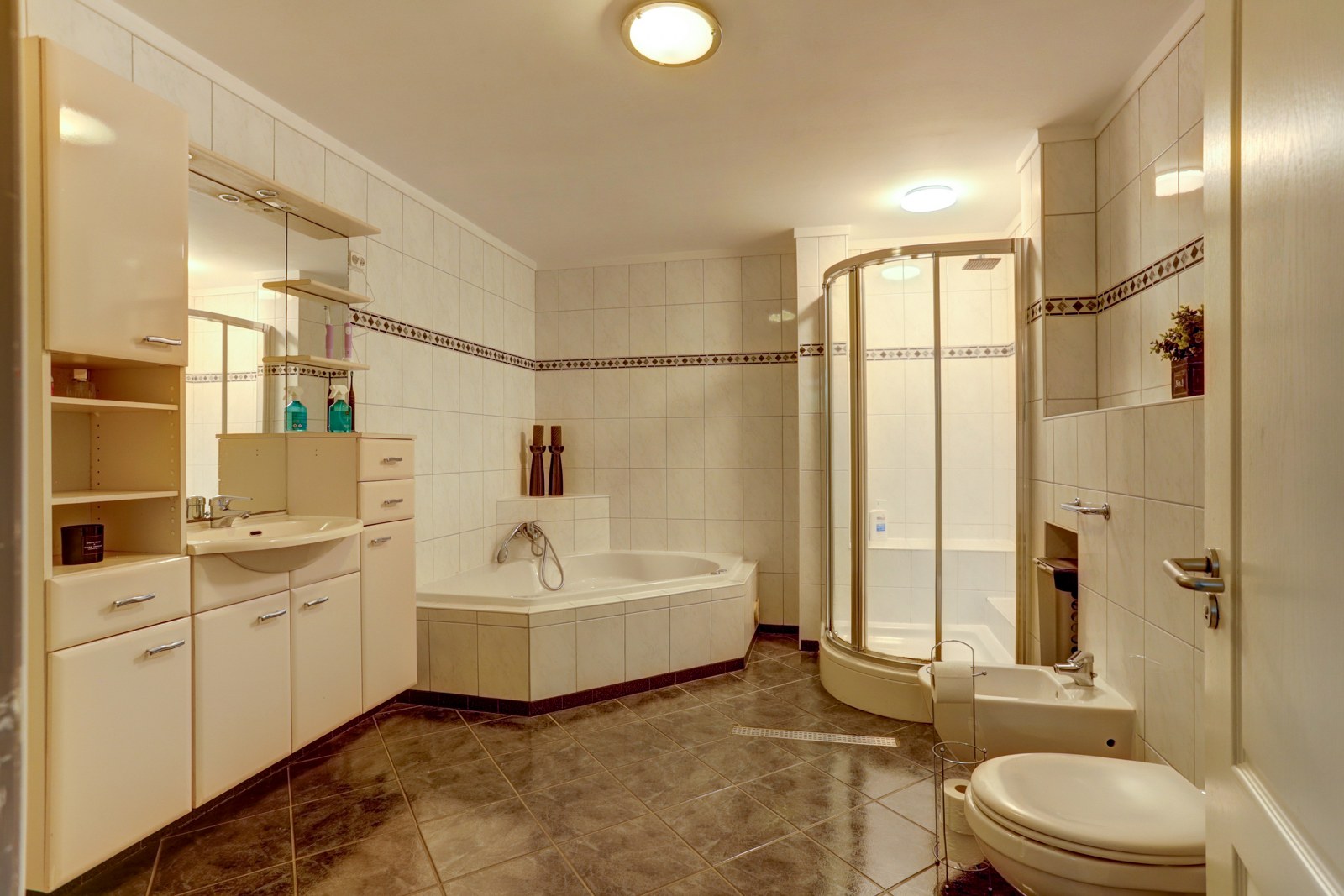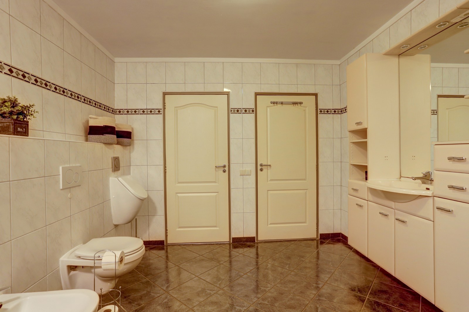 Aantal badkamers | 1 voorzien van douche, ligbad, wastafelmeubel, toilet, bidet, urinoir en vloerverwarming. |