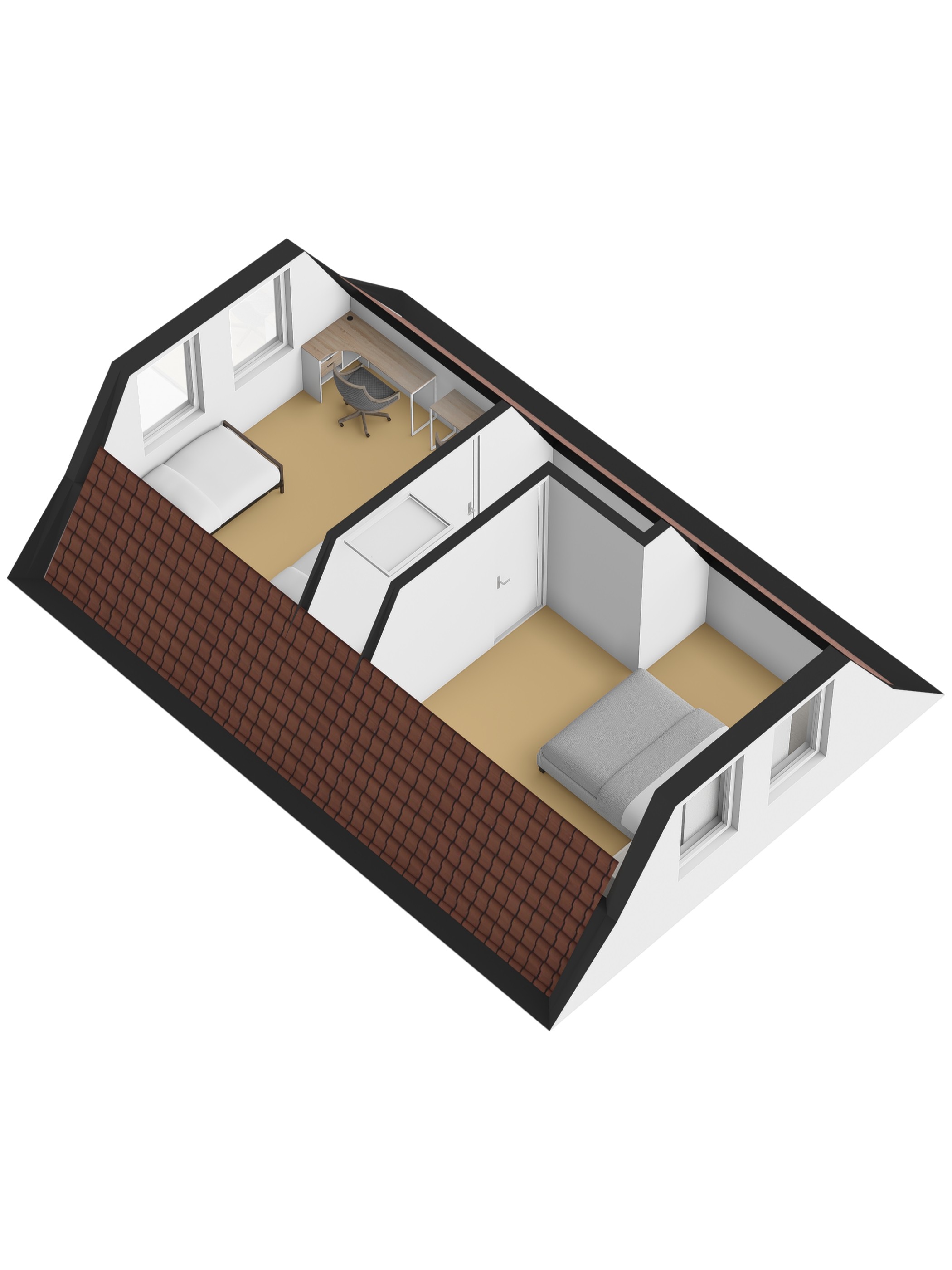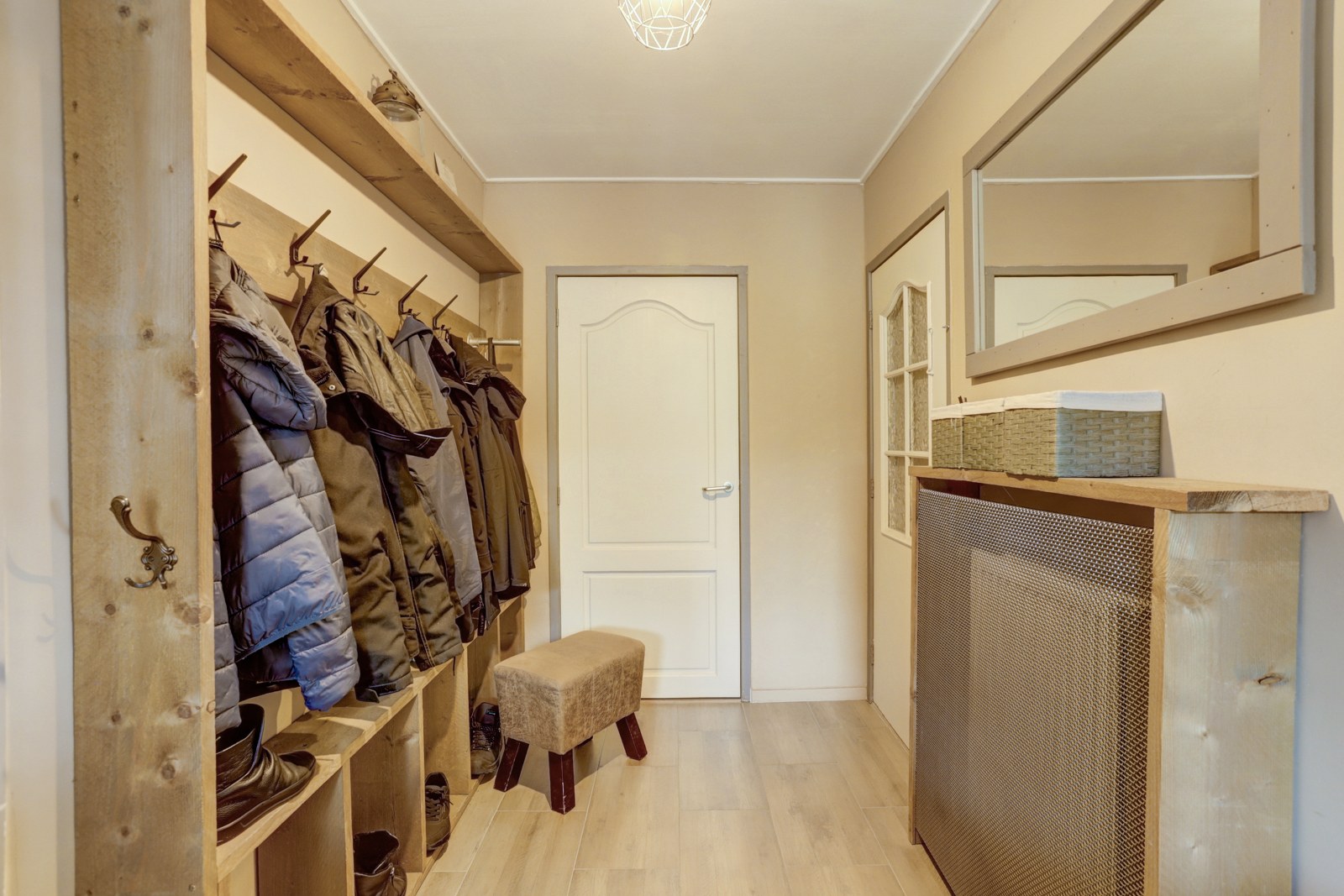 Overloop met bergruimte en twee extra slaapkamers, ideaal als logeer- of werkkamer.